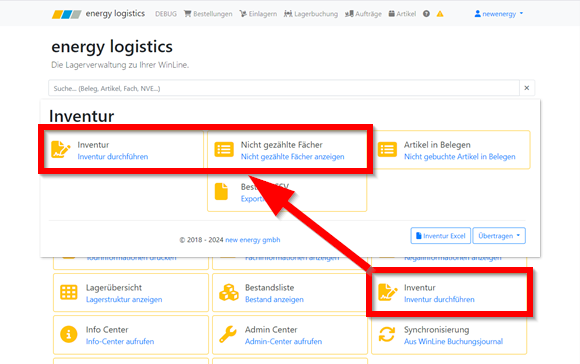 Über das Banner gelangt man direkt zur Inventur-Übersicht.