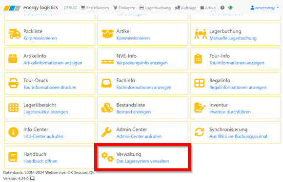 Durch das Beenden der Inventur wird die Kommissionierung automatisch wieder freigegeben und das Banner Inventur läuft verschwindet.
