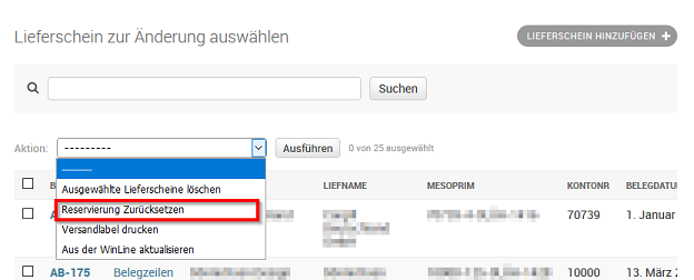 wenn sie bereits manuell in der WinLine in einen Lieferschein gewandelt wurden.