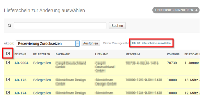 welcher alle betroffenen Artikel in einer Liste anzeigt.