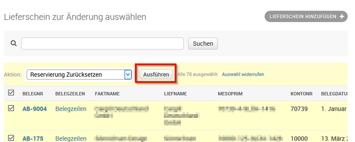 Ausführenwerden alle bestehenden Artikelreservierungen aufgehoben. - Artikelzusammenführung ausführen – Per Klick auf