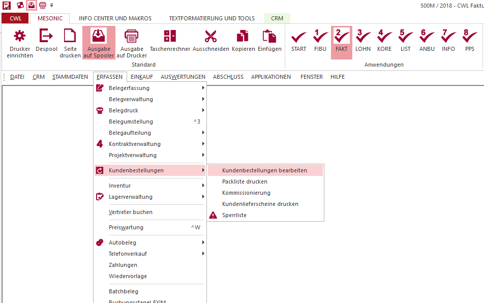 In diesem Fall sind Auftragsmengen erst in der WinLine über den Menüpunkt Kundenbestellung bearbeiten freizugeben.