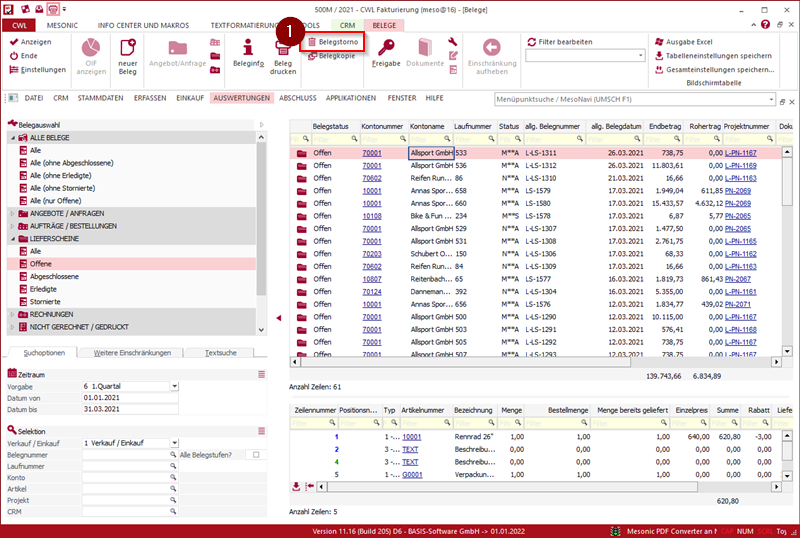 Im Fall von einem falsch gebuchten Lieferschein ist diese über die WinLine-Funktion