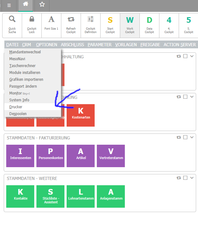auf dem hinterlegten Drucker. Der Druck auf den Spooler kann aktiviert werden, indem der Wert 20 eingetragen wird.